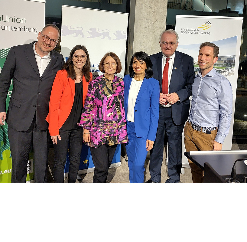 Die Europa-Union Luxemburg war auf dem Neujahrsempfang der Europaverbände auf Einladung der Europa-Union Baden-Württemberg in den Landtag von Baden-Württemberg vertreten durch unseren Vorsitzenden Stefan Kohler (auf dem Foto links) und seinem Stellvertreter Manuel Schöb (r.). Nach dem formellen Teil gab es Gelegenheit zum informellen Austausch mit der Landtagspräsidentin Muhterem Aras MdL (3.v.r.), dem Präsidenten der Europa-Union Deutschland e.V. Rainer Wieland (2.v.r.), der EUD-Landesvorsitzenden Evelyne Gebhardt (3.v.l.) und der Landesvorsitzende der Junge Europäer - JEF Baden-Württemberg e.V. Sarah Reisinger (2.v.l.).