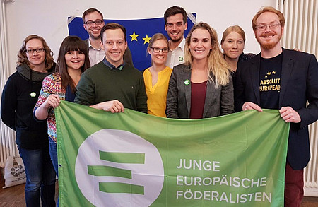 Besonders freut sich Manuel Gath auch darüber, dass es nun keine weißen Flecken mehr auf der Landkarte gibt: „Im Juni konnten wir nun auch in Mecklenburg-Vorpommern einen Landesverband gründen.“ Außerdem gelang es im Sommer, die JEF Sachsen mit einem neuen Vorstandsteam zu reaktivieren. Wichtig für den Jugendverband sei auch der Kontakt zur Europa-Union (EUD). Deren Generalsekretär Christian Moos adressierte an die Delegierten, dass gemeinsame Anstrengungen für das europäische Projekt nötig seien. EUD-Präsidiumsmitglied Walter Brinkmann beteiligte sich auch an der Antragsdebatte.