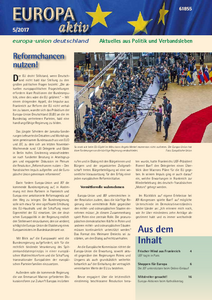 Die aktuelle Ausgabe unseres Mitgliedermagazins steht im Zeichen der Bundestagswahl und der Initiativen von Jean-Claude Juncker und Emmanuel Macron zur Weiterentwicklung der Europäischen Union. Außerdem berichtet Europa aktiv über die Aktivitäten der EUD-Auslandsverbände in Brüssel und – seit neustem – Luxemburg sowie über das Internationale Berlin Seminar der Jungen Europäischen Föderalisten. Vorgestellt wird außerdem der neue EUD/JEF-Leitfaden zur Verbandsentwicklung, das Verbandswochenende im November und die nächsten Termine der…