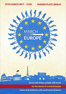 Zum 60. Jubiläum der Römischen Verträge veranstaltet die UEF gemeinsam mit der JEF Europa, der Spinelli-Gruppe im Europäischen Parlament und vielen weiteren Partnern einen großen Demonstrationszug durch Rom. Der „March for Europe“ beginnt um 12 Uhr an der Piazza della Bocca della Verità im historischen Zentrum. Am Vormittag findet eine Konferenz mit prominenten Rednern im Kongresszentrum in der Nähe des Spanischen Platzes statt. Seien Sie dabei, wenn Föderalistinnen und Föderalisten aus ganz Europa Flagge zeigen für unsere Vision…