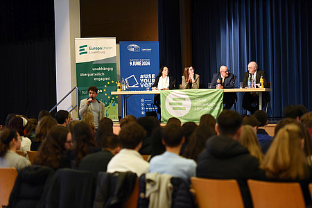 On 8 February 2024, the European Union Luxembourg hosted a student event at the Athénée de Luxembourg, where four members of the parliamentary group gave students the opportunity to ask their questions and engage in dialogue. A big thank you to Isabel Wiseler-Lima, Charles Goerens, Marc Angel and Martine Kemp for their participation. It was a moment of exchange and inspiration that encouraged the young minds to engage and speak up for the future of Europe.